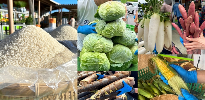 ※お米:お米盛り放題、大根:大根葉っぱ両手掴み、さつまいも:さつまいも詰め放題、白菜:白菜抱え込み放題、キャベツ:キャベツ抱え込み放題、人参:人参詰め放題、新玉ねぎ:新玉ねぎ詰め放題、竹の子:竹の子掴み放題、新じゃがいも:新じゃがいも詰め放題、まいたけ:まいたけ詰め放題、とうもろこし収:とうもろこし収穫体験、枝豆:枝豆わしづかみ、とうもろこし早:とうもろこし早むき大会