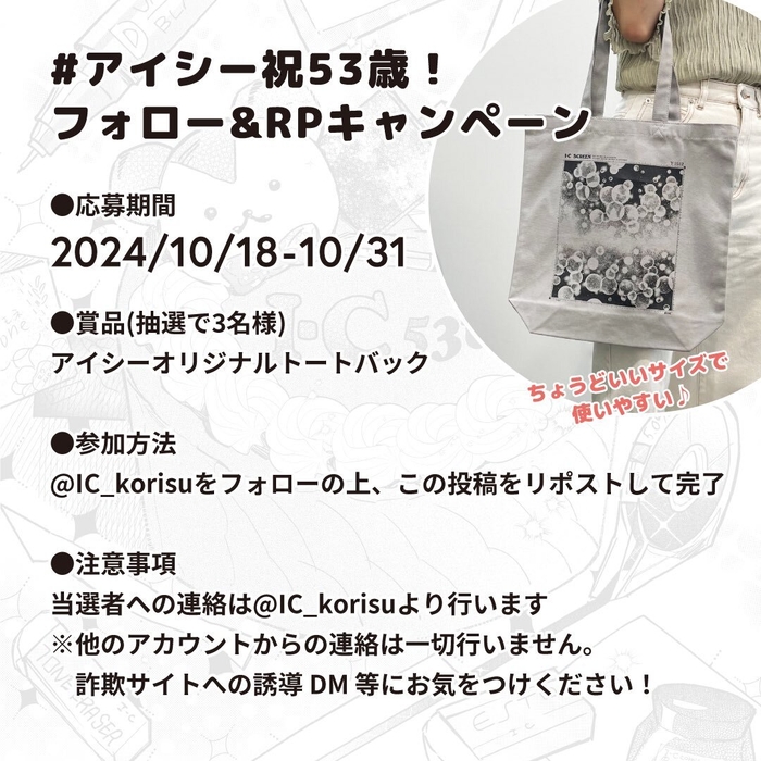 漫画画材のアイシー祝53歳!オリジナルトートバッグが当たる Xフォロー&RPキャンペーンを10月31日まで実施 | NEWSCAST