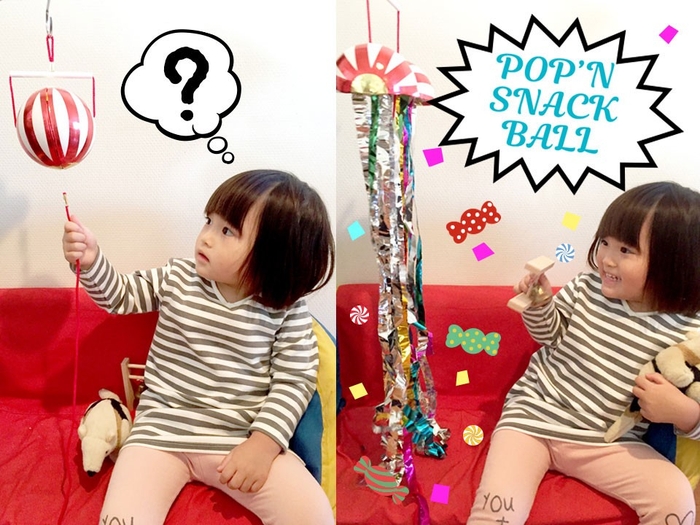 直径12cmのくす玉を割るとお菓子が飛び出す、イベント向けのサプライズギフト。