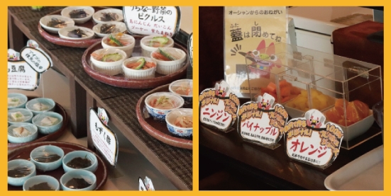 ・人気コーナーの沖縄料理の提供は蓋をした状態のまま提供しております。チャンプルーやイリチーなどのお料理もこれまで通りご提供しております。