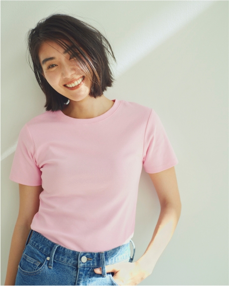 クルーネックの開き具合や袖の長さなど、大人の上半身を美しく、おしゃれに見せるシルエットにこだわりました。身体にフィットするサイズ感ですが、伸縮性が高いため、着心地も◎。コットン100%。マシンウォッシャブル。