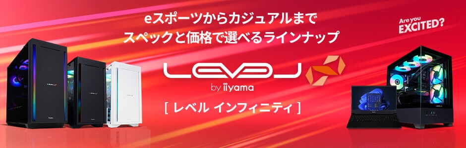 「LEVEL∞ (レベル インフィニティ)」は、eスポーツをはじめとした世界的なオンラインゲーム人口の拡大と熱狂を背景に、ゲームライフをとことん楽しむために、最新技術の粋を集め誕生させた次世代のゲーミングPCです。