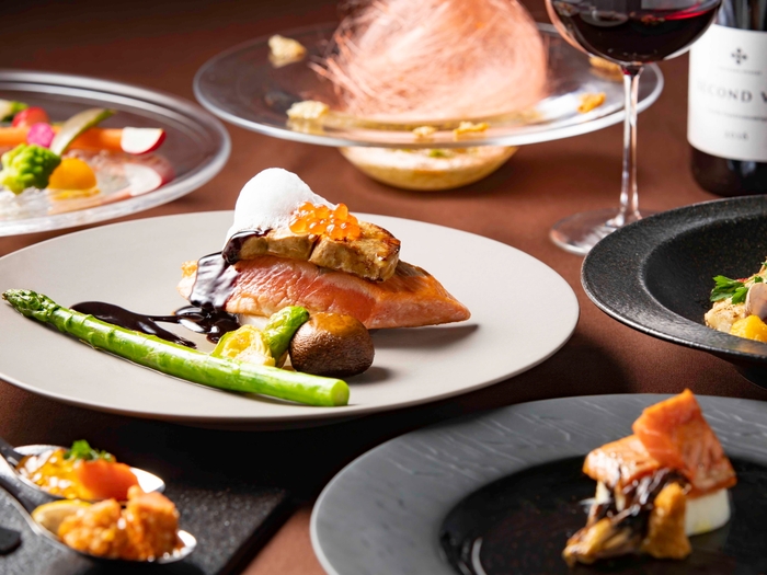 鮭をテーマにした体験を楽しめる1泊2日「鮭旅」。鮭を食べるだけでなく、客室やアクティビティでも堪能し、滞在を満喫していただけます。鮭ディナーでは、鮭が遡上(そじょう)する川の近くのワイナリーから選んだ、鮭の身の色に合わせた赤・ロゼワインのペアリングが新たに加わり、さらに楽しみ方が広がります。