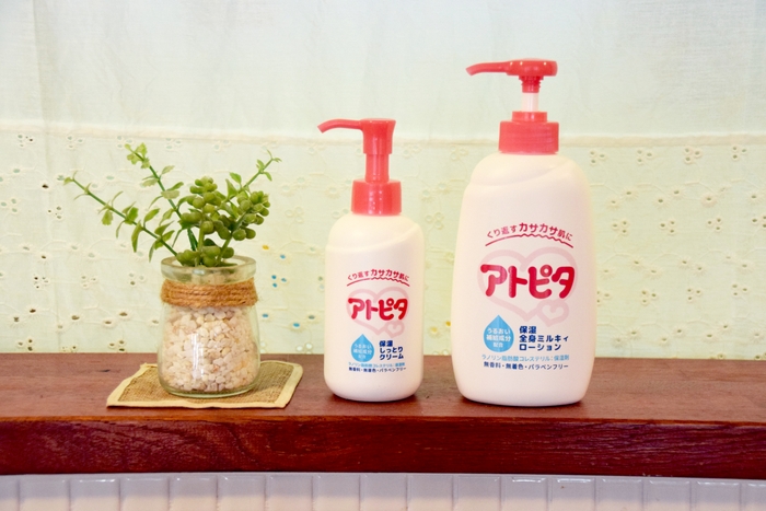 娘の乾燥が最近かなり気になっていたため、アトピタのお話しをぜひお伺いしたいと思っていました。クリームタイプはポンプタイプもあり、かなり助かると思います。忙しい中でも、片手で保湿できるのは素敵だと思います。