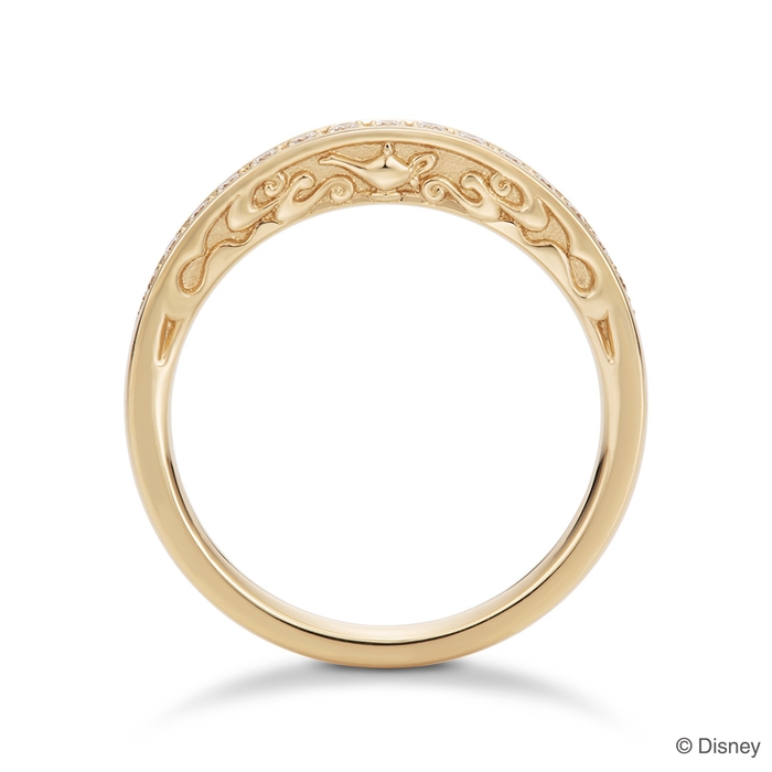 物語の重要なモチーフ「魔法のランプ」を中央にデザイン。ダイヤモンドは職人がひとつひとつ丁寧に留めており、「ジャスミン」の強い自立心と意思のように凛と輝きます。