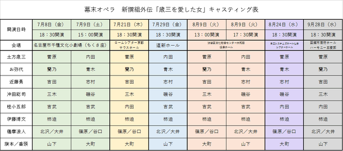 株式会社マミ/日本新作ミュージカル制作委員会、『幕末オペラ 新撰組外伝 【歳三を愛した女】』が2022年7月8日(金)~9月28日(水)に全国6都市(名古屋・京都・札幌・東京・仙台・函館)にて上演されます。チケットはカンフェティ(運営:ロングランプランニング株式会社、東京都新宿区、代表取締役:榑松 大剛)にて4月15日(金)10:00より発売開始です。