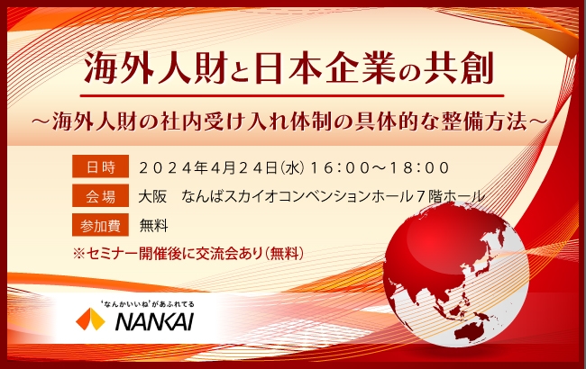南海電気鉄道株式会社は、「海外人財と日本企業の共創~海外人財の社内受け入れ体制の具体的な整備方法~」をテーマとしたセミナーイベントを開催します。