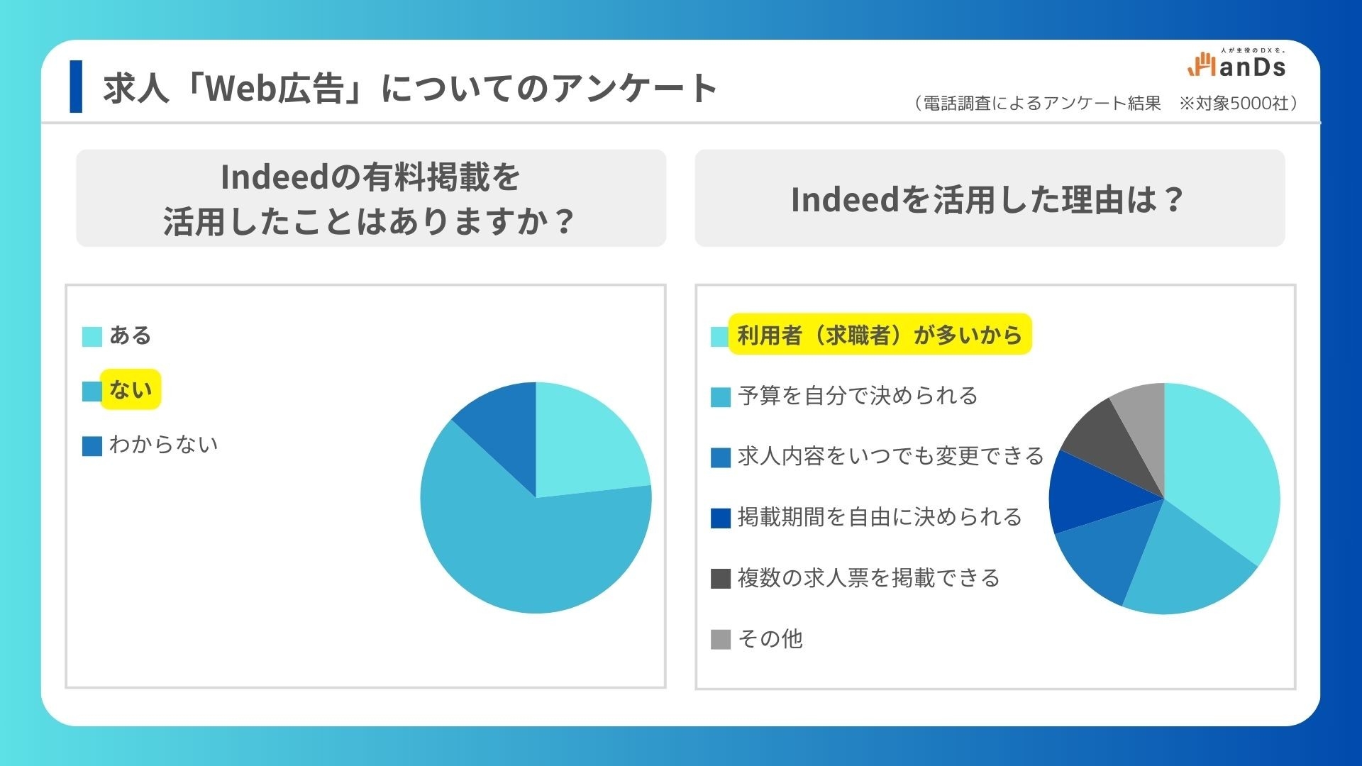 調査の結果、採用活動中の企業の23% が「 Indeed の有料掲載を利用したことがある」と回答。