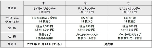 「阪神タイガース デスクカレンダー 2025(卓上タイプ)」、「阪神タイガース マスコットカレンダー 2025(卓上タイプ)」は引き続き発売中です。