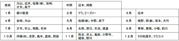 表面は選手の表情豊かなフォトタイプ、裏面はスケジュールが書き込める選手の誕生日入り卓上カレンダー。