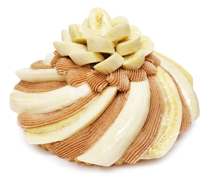 甘みが強くねっとりして食べ応えのある台湾産のバナナを、大ぶりにカットして飾り付けました。コクのあるマロンクリーム、香ばしいアマンディーヌのベースと共に楽しめます。