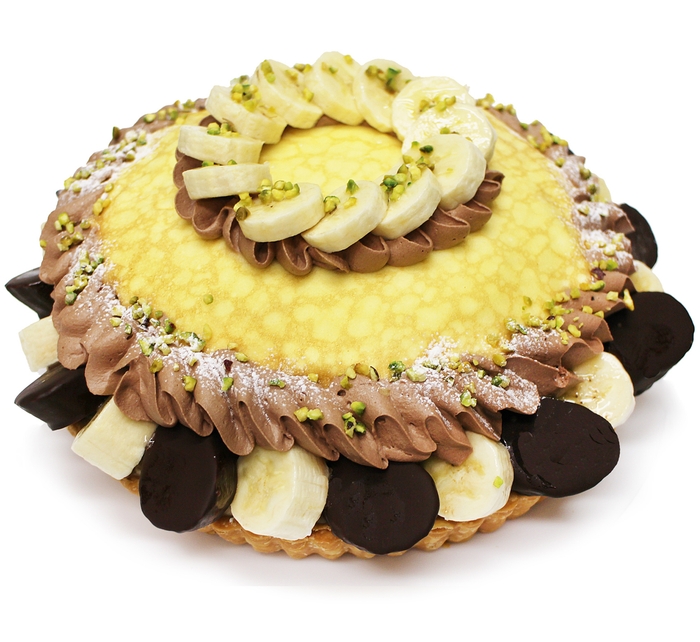 なめらかで程よい甘みの、日本で最も有名なフィリピン産バナナをふんだんに使用し、コクのあるチョコレートクリームとマスカルポーネのベースに合わせて、ミルクレープに仕上げました。ビターチョコをコーティングしたチョコバナナと共に楽しめます。