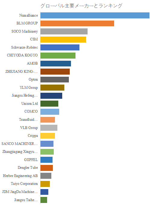 第13章では、CNCパイプ曲げ機市場の主要メーカーについて、基本情報、製品仕様と用途、販売量、収益、価格設定、粗利益率、主力事業、最近の動向などの詳細情報を紹介します