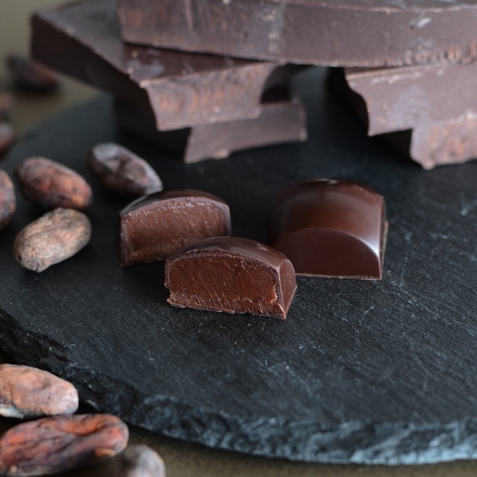 カカオレート(R)とは、同社の自然食業界での長年にわたる知見をもとに、カカオ豆の機能性を独自に引き出したまったく新しい食品です。ひと口食べて幸せな美味しさを感じられ、心身と共鳴し、その結果として私たちの生命力を高めます。カカオ豆農家との信頼関係を土台にカカオ豆を直輸入し、原料選び、レシピ設計、微細なエネルギー調整などにより、他にはないものづくりを実現しています。このたび、定番で好評をいただいているカカオレートのタブレットに続き、ボンボン・カカオレートが誕生しました。