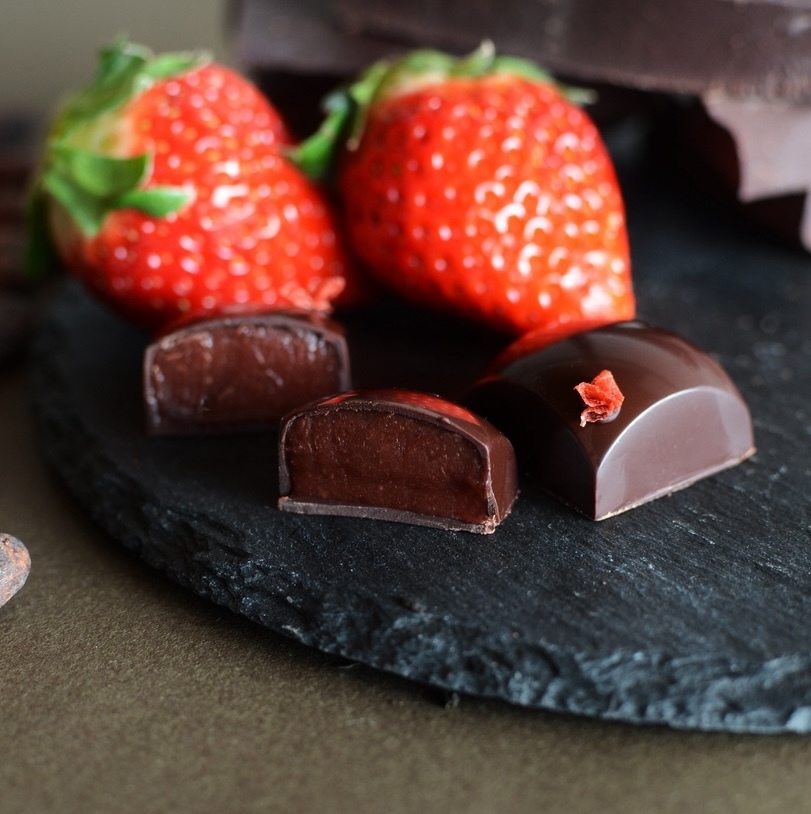 ストロベリーの酸味を活かした王道の組み合わせのガナッシュ。はじけるベリー感と、甘く溶けるような口当たりといちごの香りが特徴。