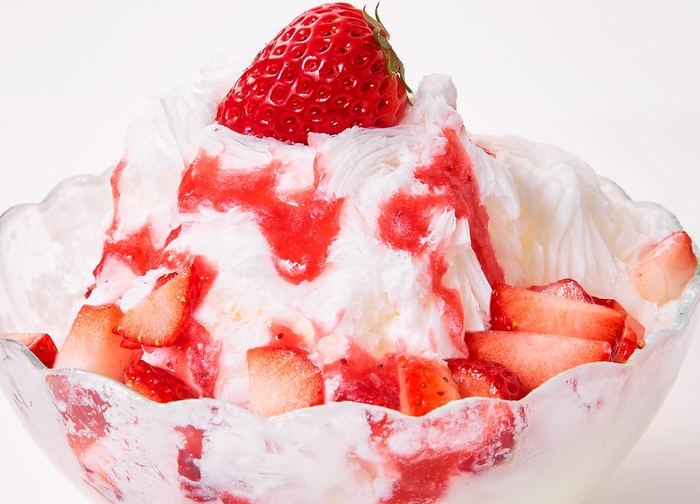 旬のいちごを使用したかき氷。いちごの酸味とミルク氷は相性抜群です!