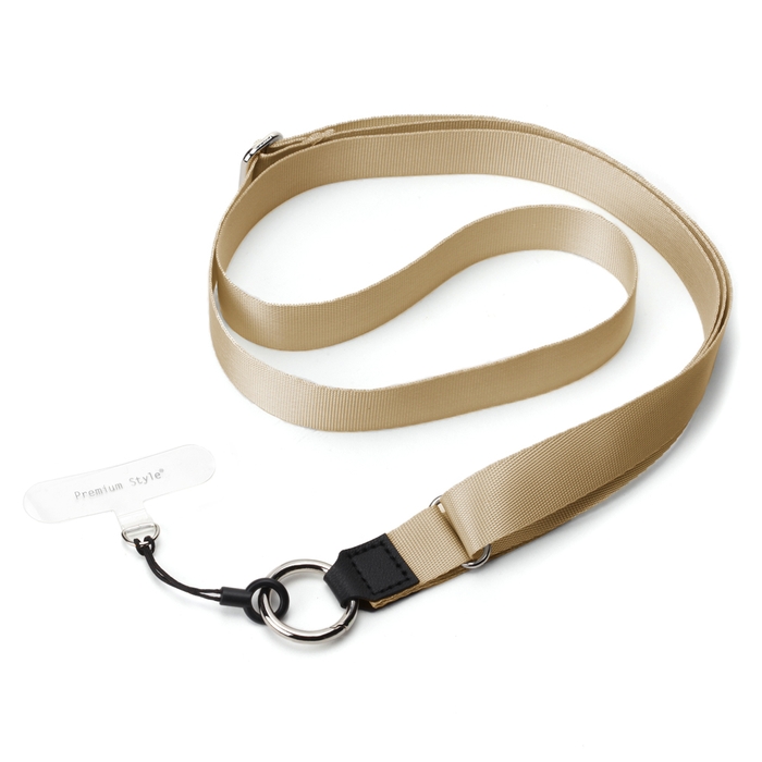 お気に入りのケースに挟むだけで快適なショルダータイプに切り替え可能なストラップホルダー付 ショルダーストラップです。肩にくい込みにくい平紐タイプ。ストラップホールがなくても付属されている「ストラップホルダー」をケースに挟むだけでストラップを取り付けする事が可能です。(※お手持ちのケースや充電口の形状によってはホルダーが収まらない場合があります。)最長140cmの長さ調整ができてネックストラップとしても使用出来ます。スマホの向きを調整できる松葉紐付きで、ストラップホール付きケースにも対応。(耐荷重:3kg)