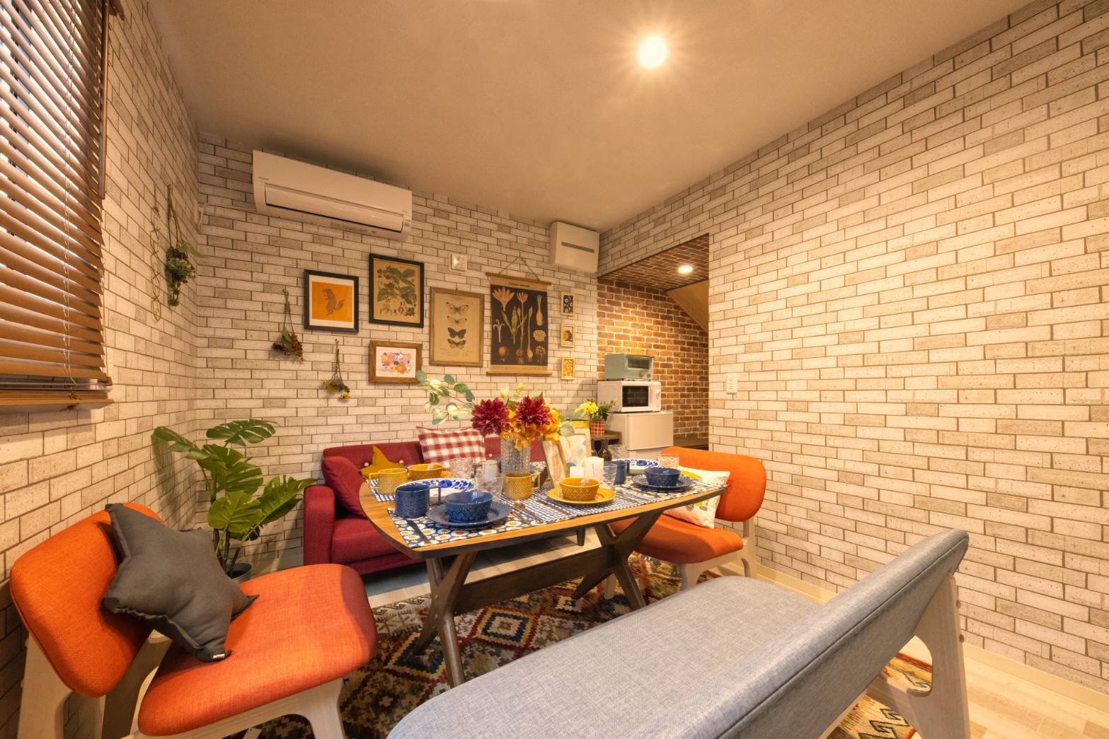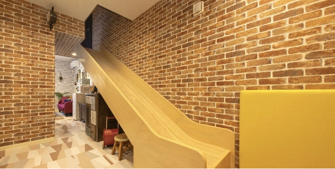 レンガ調の壁をはじめ、家具や小物も含め全体的にとてもカラフルで遊び心のある内装です。屋上にはテラスもありますので屋外での自然光を使った撮影にもお使いいただけます。子供向けのコンテンツ、パパ・ママ向けのコンテンツの撮影時に最適です。