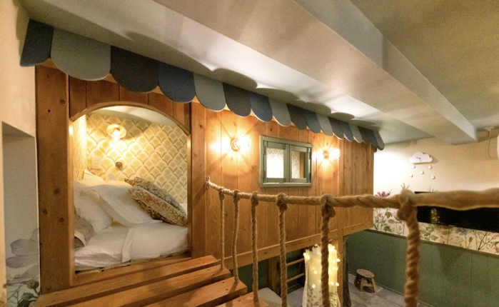 西武新宿線鷺ノ宮駅より徒歩4分にある、ツリーハウスや隠し扉、滑り台、屋根裏などのある、まるでテーマパークのような大人も子供もワクワクするようなからくりを備えた空間を撮影にご利用いただけます。