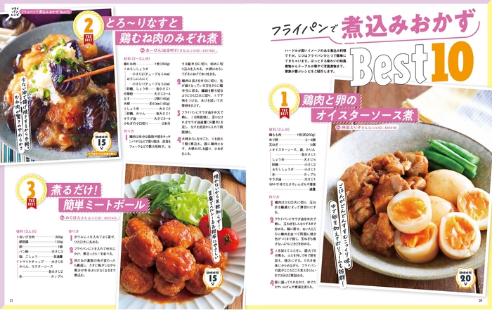 特集ではフライパン1つだけでできるレシピを紹介。フライパンは焼く、炒めるだけでなく、煮る、蒸すなどにも使えるお役立ち調理器具。2食材で作れる簡単おかず、お昼ごはんに作りたい焼き麺レシピ、おもてなしにも作りたい本格煮込みレシピまで、フライパンのポテンシャルを活かすレシピをたっぷり紹介します。
