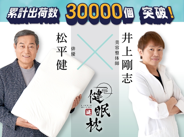寝返りのしやすさと寝姿勢を徹底的に追及し、睡眠の質にこだわった枕【健眠枕】が、累計出荷数30,000個を突破しました。健眠枕は、現代人のストレートネック(スマホ首)、猫背、巻き肩、首の違和感といった悩みを緩和するために、快眠をサポートする枕です。横向き寝でも身体をまっすぐに保ち、質の高い眠りを提供します。松平健さんがプロデュースしたとあってメディアでの反響がとても大きく、8月13日発売の日本経済新聞でも紹介されました。