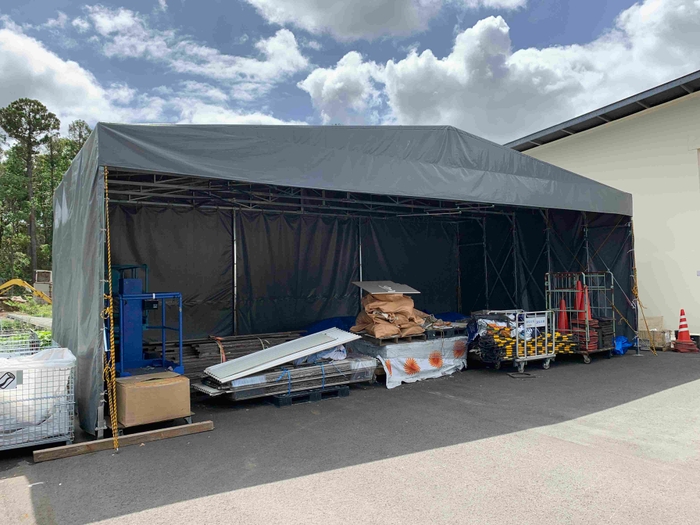 感染症対策や災害時、梅雨対策の屋外利用を目的とした 移動式伸縮大型テント「クイックストック」に新たな サイズバリエーションを追加し販売開始