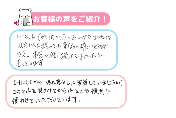 IHの天板は拭き取りやすくて便利ですが、 器具の接触でキズついたり、吹きこぼれに熱が加わってコゲついたり、意外と汚れるシーンがあります。