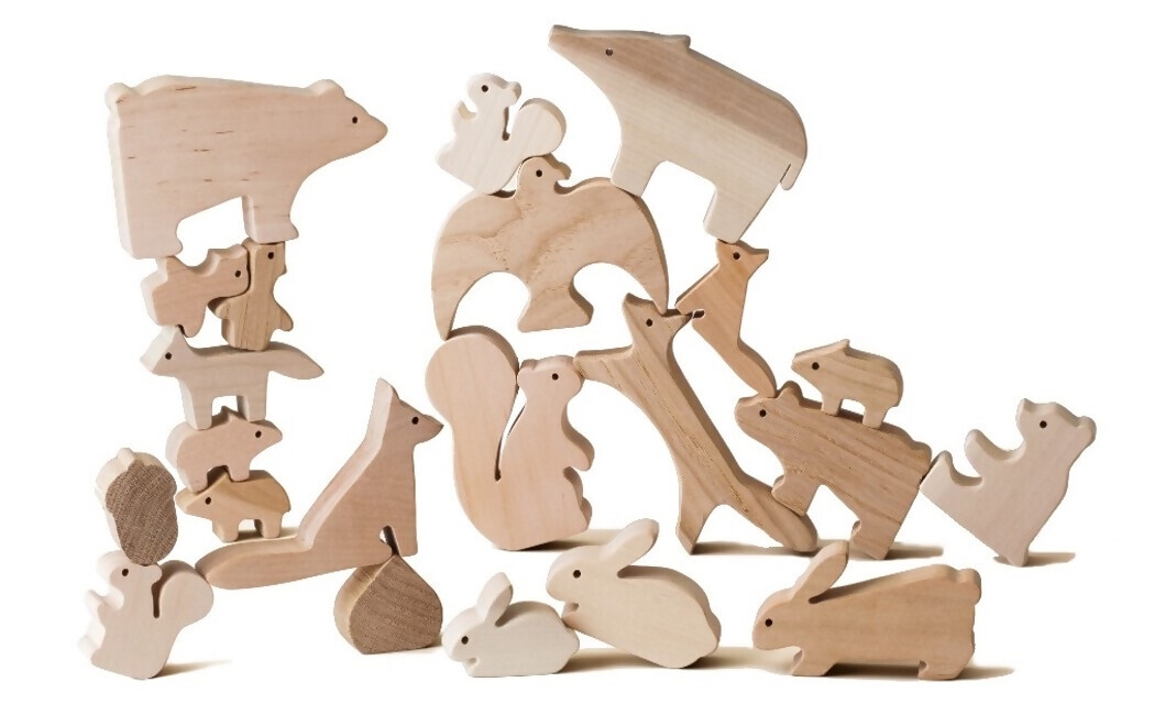 さくら、くり、しらかばなどの日本の木々で作った、日本の森に住むどううぶつたちの積木です。日本の木々を飛騨高山の職人が一つひとつ切りぬき無塗装で仕上げた知育玩具。「グッド・トイ2013」選定、「林野庁長官賞」受賞。