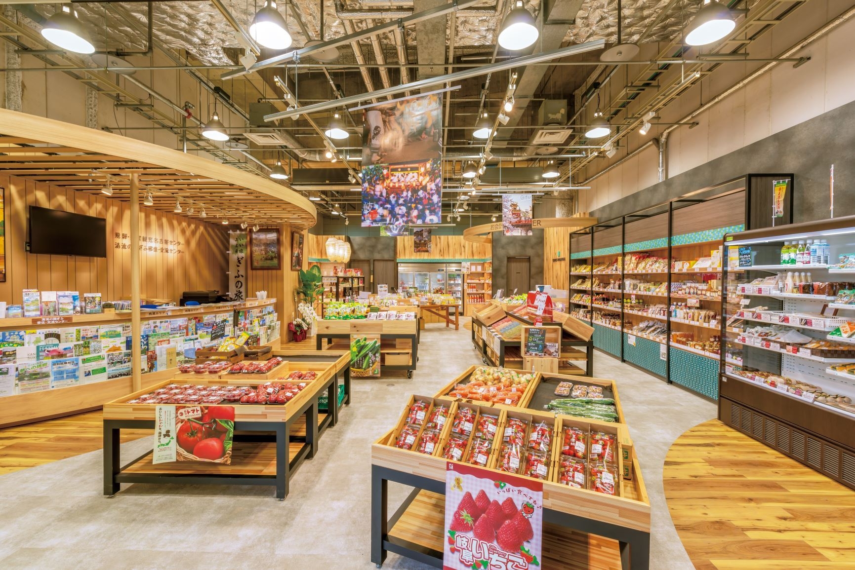 店舗内を性格の異なる2つのエリアにゾーニングし、岐阜県の伝統文化と革新性を体感できるレイアウトに