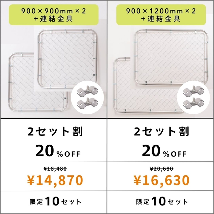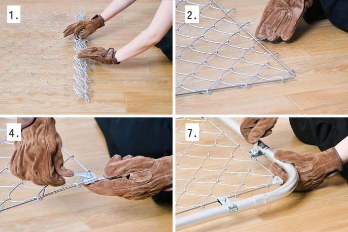 金網 1枚/金属線 4本(900×1200mmは長さ2種類)/シリコンチューブ 9個(予備1個含む)/金属線 ジョイント金具 8個/六角ボルト 16個/六角ナット 16個/六角スパナ 2本/フレーム 4本(900×1200mmは長さ2種類)/フレーム金具 12個/フレーム コーナー 4個/取扱説明書 1枚/ステッカー 1枚(おまけ)