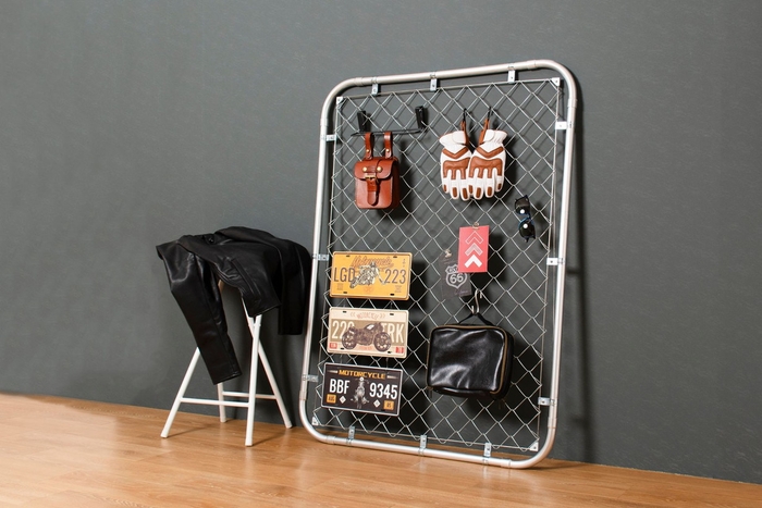 金網はポスターのようにくるくると丸められ、フレーム部分はコーナーをはずすことでかなりコンパクトになります。アメリカンな雰囲気を演出できる