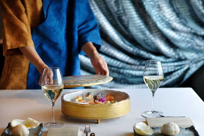 食文化において類似性の高いシチリア島の調理法と組み合わせることで、沖縄食材から新しい魅力を引き出すことを目指した、全8品のコース料理です。シチリアを中心にセレクトしたワインのペアリングツアー、コンセプトを表現するために選定した個性豊かな器たちが食事に彩りを添えます。開放的なダイニングで特別な時間を過ごせます。