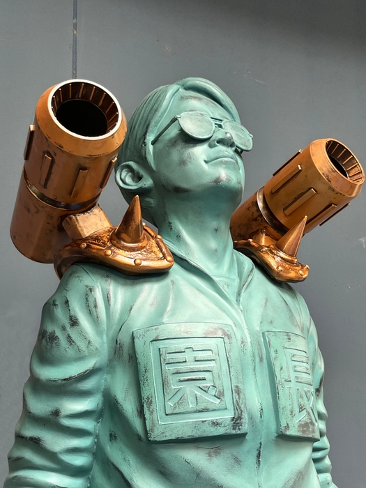 超ひらパー兄さん就任10周年を称え、2023年4月29日(土・祝)に建立された岡田園長像。7月15日(土)からは夏バージョンとして、あの懐かしい装いで、みなさまをお迎えいたします。拝むもよし、いろんな角度から眺めるもよし、記念写真を撮るもよし。思い思いに10周年を称えてください。