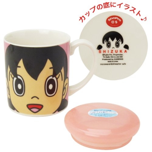 裏面も凄すぎます。LOVEしずか、な感じも、突っ込んだデザインです。メーカーさんも流石に怯んだのでしょうか、、ドラえもんとドラミちゃんはマグで勝負しているのに、しずかちゃんのものは蓋がついていて、ちょっと原価をかけて、というか、便利になっています。