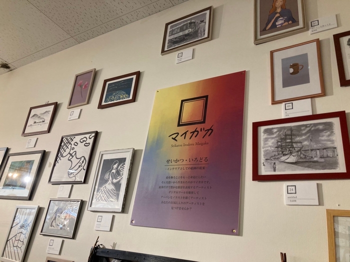 展示してある絵画は、鉛筆で緻密に描かれた風景やデジタルツールを駆使して描かれたイラストレーション、思わず笑ってしまうようなトンチの効いた絵画など実に様々。学生やアマチュア作家の方、趣味で絵を習っている方など個性豊かな方々から絵を募りました。また、絵画の展示スペースを大幅に拡大し、展示数も従来の約4倍に増やすことで選ぶ楽しさ・飾る楽しみがアップしました。