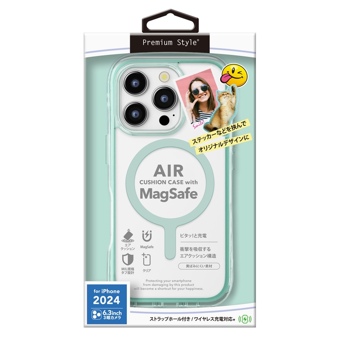 各種MagSafeアクセサリーに対応した360°エアクッション構造が、iPhone本体を衝撃から守るエアクッションケースです。