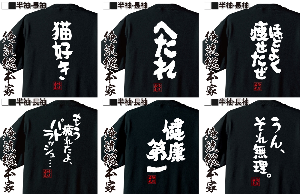俺流総本家の語録Tシャツは、1万種類以上のデザインを取り揃えています。面白いものから感動的なものまで、多彩なデザインがあり、お客様一人ひとりの個性を引き立てる一枚を見つけることができます。カスタマイズ可能なデザインもあり、特別なイベントやギフトにも最適です。