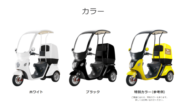 EV DELIVERY(デリバリー)は、株式会社ブレイズが開発した、3輪タイプのEVデリバリーバイクです。