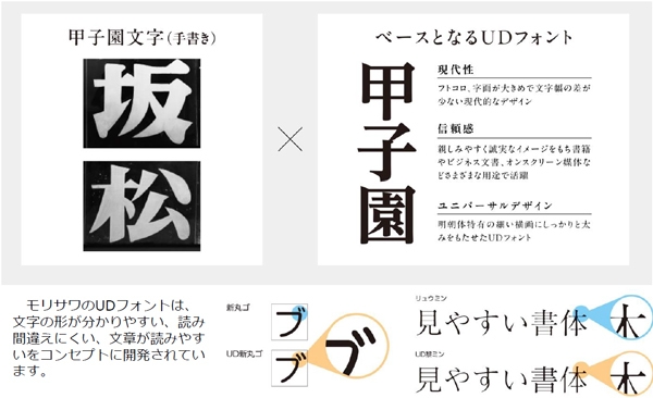 『甲子園フォント』は、『「甲子園文字」の伝統を次の100年に繋ぐ』というコンセプトのもと、より多くの方の読みやすさに配慮したUD(ユニバーサルデザイン)フォントをベースとして制作しています。