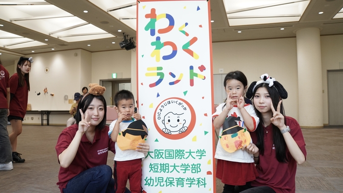 大阪国際大学短期大学部(学長宮本郁夫、大阪府守口市)幼児保育学科では、門真市(包括連携協定先)との連携による地域連携で取り組む子育て支援活動「わくわくランド」を年間を通じて開催しています。この活動の趣旨は、京阪沿線において本学が保育者養成校であるため、自治体と連携して、地域の若者を育て、地域の園に還すという「子育て基盤づくり」にあります。