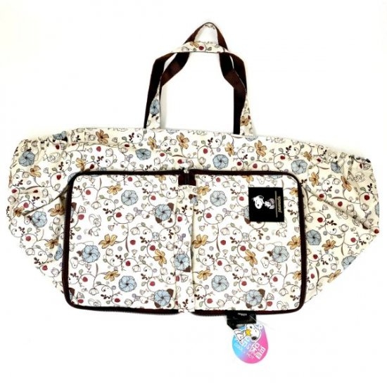 キレイなお花のデザインが目をひく、スヌーピーのレジカゴバッグです。このデザイン、以前にもエコバッグでご紹介したのですが、本当にオシャレですよ♪