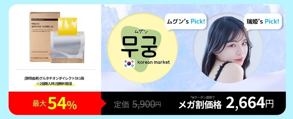 ムグンさんと瑞姫さんがおすすめする「(酵母由来)ヨエスターグルタチオンダイレクト5X」は、グルタチオン(酵素エキス)を軸に、ビタミンC・ビタミンE・ミルクシスルを贅沢にブレンドした、フィルムタイプのサプリです。肌のくすみをケアし、明るさを引き上げる効果が期待できます。口腔内でフィルムが溶ける設計のおかげで、吸収率を最大化し、エイジングケアとトーンアップを実感しやすくなっています。コンパクトなサイズで携帯性が高く、外出先でも無理なく継続しやすい点が魅力。錠剤やカプセルが苦手な方にもおすすめです。現在、2個購入で1個無料になるキャンペーンを実施中です。