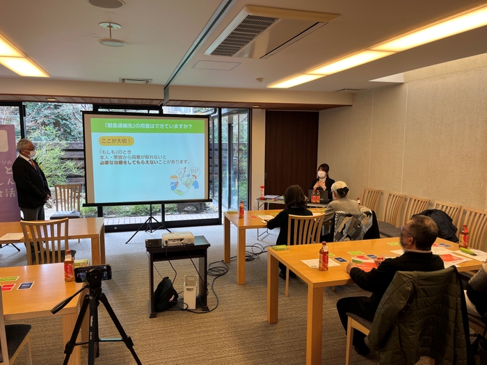 セミナーの中では、一部自治体でも配布を行っている 「緊急医療情報キット」 など、身近なところで提供されているサービスも紹介。すぐに始められる備えとして 「緊急連絡先カード」 をお土産にお持ち帰りいただき、簡単に始められることから一つずつクリアにしていくことを経験することで、次のアクションにも繋げやすい工夫がなされました。
