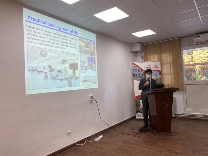 森ノ宮医療大学(大阪府大阪市住之江区)医療技術学部臨床工学科の辻義弘准教授は、8月27日(土)にチュニジアで開催された第8回アフリカ開発会議(TICAD8(※1))のヘルスケア部会に参加しました。今回のチュニジア訪問は、臨床工学技士(※2)の制度構築や人材育成が求められるチュニジアの現状の視察が目的で、本学が連携協定を締結しており、同じく臨床工学系の学部があるチュニス・エルマナール大学(University of Tunis El Manar(※3))へも訪問しました。チュニス・エルマナール大学では、現地の学生や教職員への講義も実施し、多くの方が日本への興味を持ってくださいました。協定内容の実施方法についても協議し、今後学生の交換留学や、本学教員によるチュニス・エルマナール大学への出張講義等について推進して参ります。