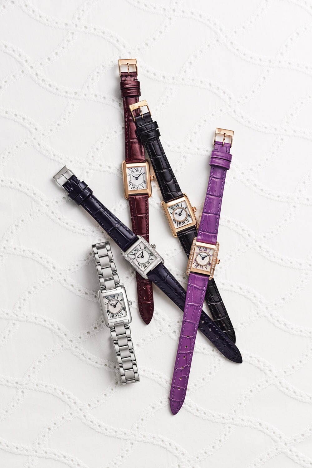 フランス語で“スクエア”を意味する角型のフェイス、伝統的なローマ数字のインデックスを採用したクラシカルデザインが特徴です。オニオンリューズや繊細なギョーシェ装飾など、ディテールにもこだわっています。マザーオブパールやダイヤモンドをあしらったモデルなど、カラーやデザインのバリエーションも豊富にそろえています。