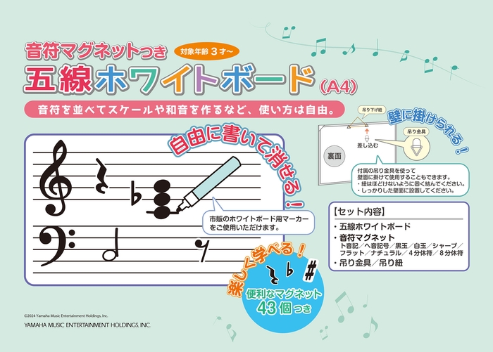 株式会社ヤマハミュージックエンタテインメントホールディングス(本社:東京都豊島区 代表取締役:堤 聡)は、新文具「五線ホワイトボード(A4)音符マグネットつき」を、2024年1月30日に発売いたします。