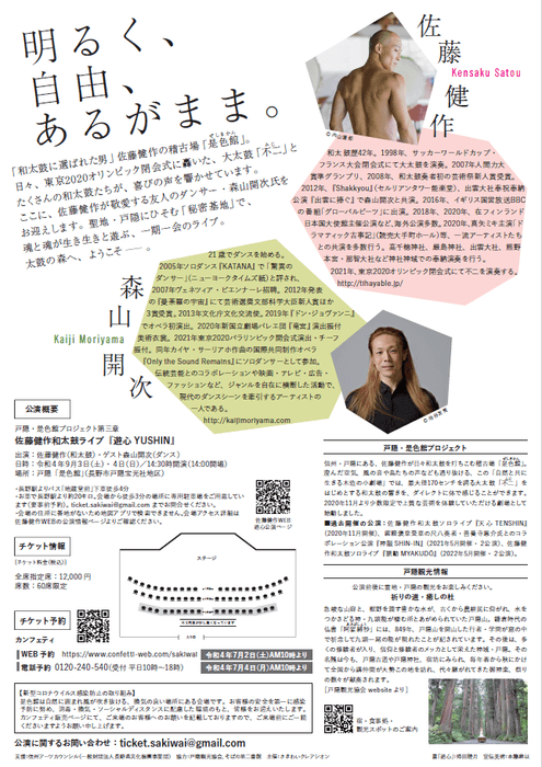 和太鼓に選ばれた男・佐藤健作とダンサー森山開次の競演 『佐藤健作和太鼓ライブ 遊心 YUSHIN 』戸隠・是色館にて開催決定 カンフェティでチケット発売