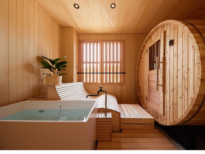 “夜を彩る大人の宿”をテーマに〆パフェやアフターサウナのモクテルを愉しむBAR、フィンランドサウナ、貸切露天風呂などを完備した、大人が夜ふかしを愉しめる宿。