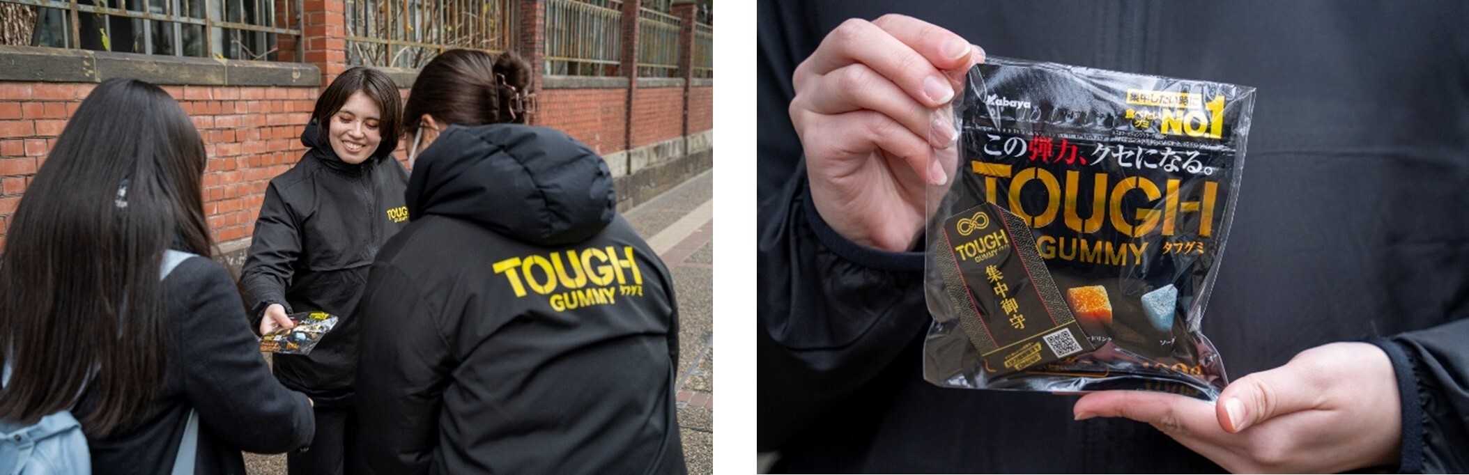 過去の様々な研究から「咀嚼が作業効率や集中力にポジティブな影響を及ぼす」ということが分かっています。そこで、共通テスト後の受験生に向けて、噛み応えがある高弾力食感の『タフグミ』と、志望校へ合格する願いを込めた「集中御守ステッカー」をセットで配布しました。合格祈願の願掛けにとどまらず、『タフグミ』独自の高弾力食感の噛み応えが生む集中力を“タフな勉強”にいかし、試験をタフに乗り切ってほしいという想いを込め、本企画の実施に至りました。