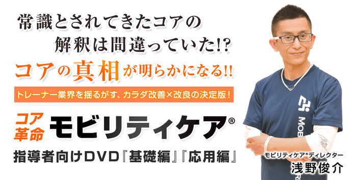 この「コア革命 モビリティケア®応用編」では、基礎編の内容をベースに常識とされてきたストレッチの誤りを暴きつつ、エクササイズ誘導法に発展させています。